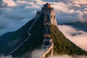 一条从山下直通极顶长达九公里的中轴线,凭藉7000级石阶把天、地、人贯穿为一个完整的序列,从而成为人类投入大自然的通天之路。